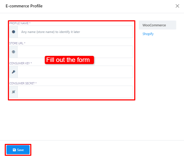 - After you have filled out the required information, click on the `Save` button to finalize the setup of your WooCommerce profile.