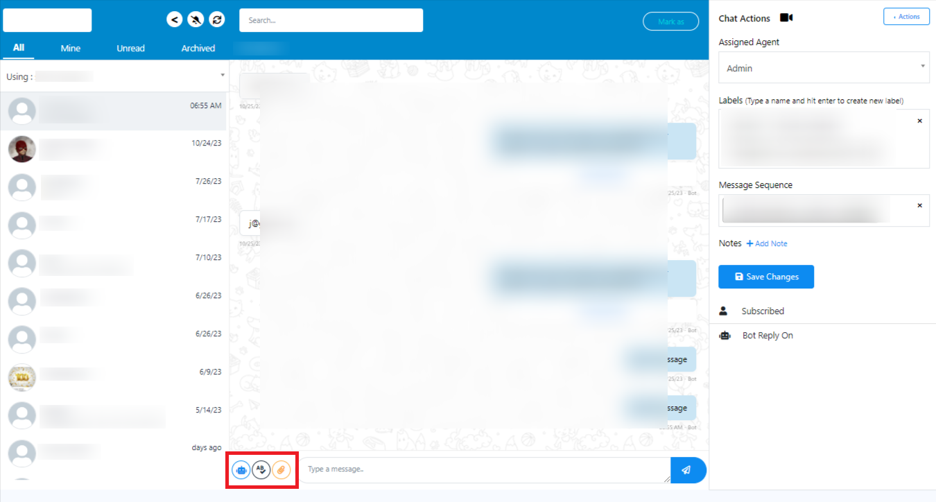 On the right side of your message window, you`ll find the `Chat Action` section, which providesyou with various actions you can apply during your chat interactions.